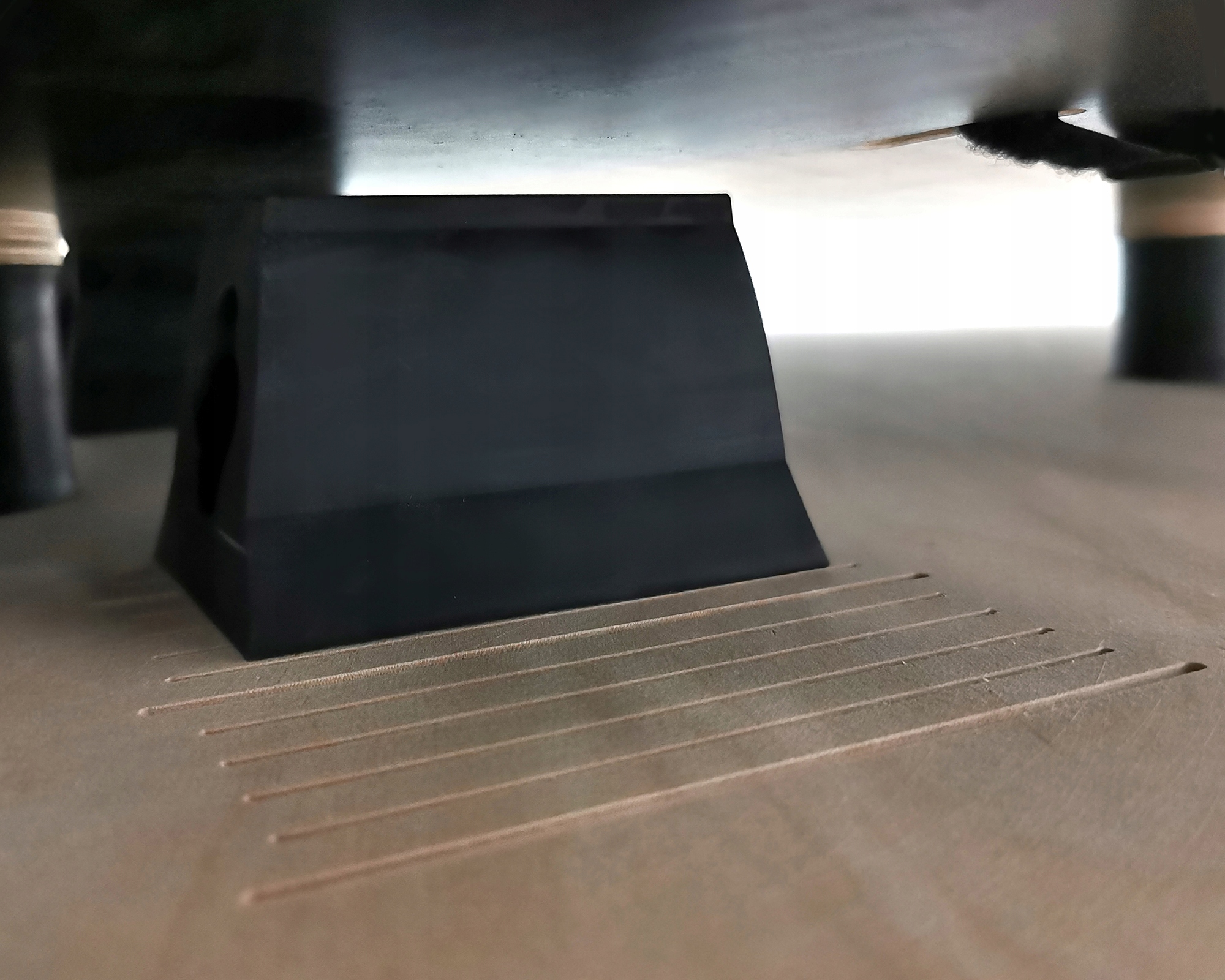Zamiast popularnych piłek zastosowano profile gumowe EPDM. Dzięki temu nie trzeba walczyć z uciekającym powietrzem i zmianami ciśnienia jak również przecieraniem piłek z upływem czasu. Kwestia regulacji twardości jest również banalna, zajmuje kilka sekund na stronę. Odsuwając amortyzator od osi platformy (na wyskalowanej podziałce), zwiększamy dźwignię i przenoszoną siłę.