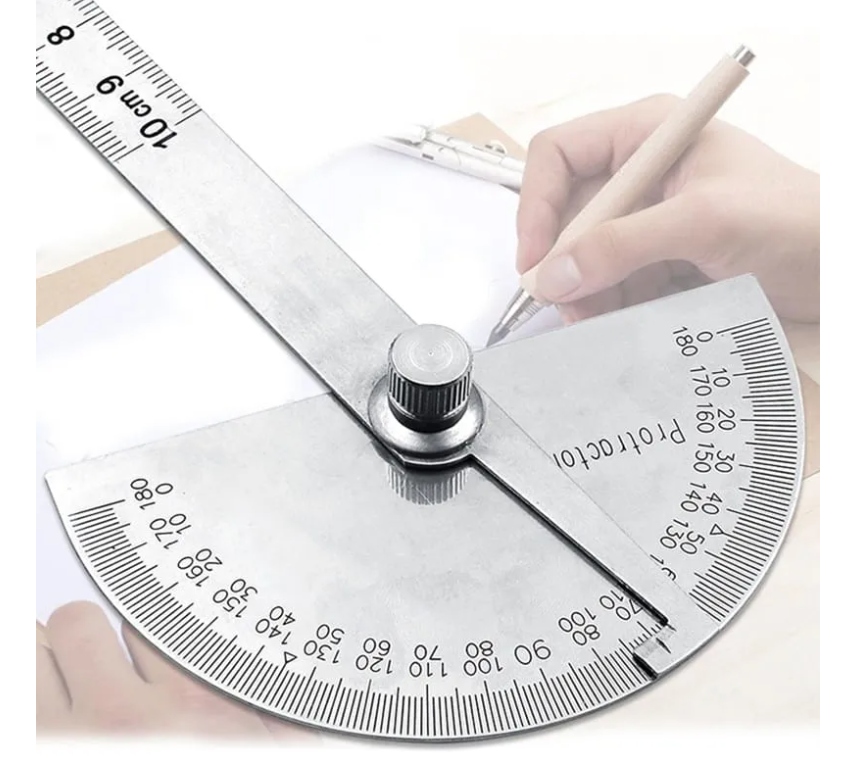 Для использования в маршрутных работах и слесарь изготовлен из металла, имеет градуировку с нониусом, шарнирно закрепленными рычагами измерения. Транспортир найдет применение в промышленности: металлообработка, столярное дело и т.д.