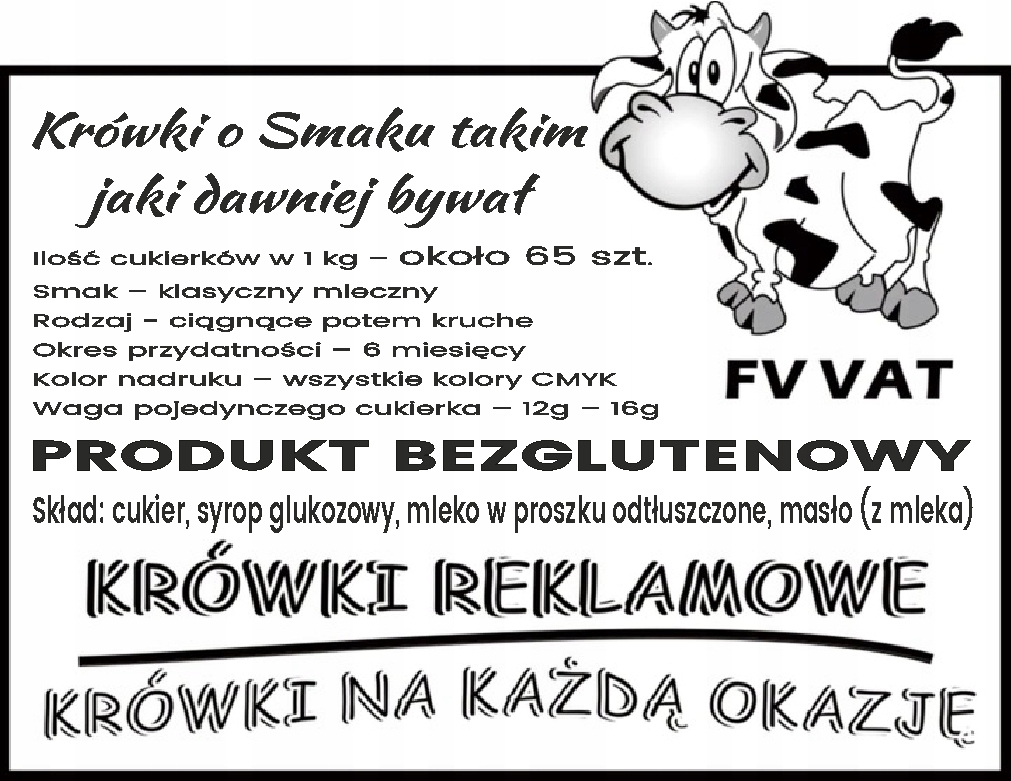 W naszych produktach NIE znajdą Państwo tanich dodatków takich jak tłuszcz rośliny, serwatka, substancje konserwujące lub zapachowe.Nasze Krówki tworzymy z pasją w oparciu o własne, sprawdzone od lat, tradycyjne receptury. To, co od wielu lat wyróżnia nas na rynku to DOSKONAŁY TRADYCYJNY SMAK NASZYCH KRÓWEK dzięki stosowaniu wyłącznie najlepszych składników takich jak masło oraz mleko oraz RĘCZNA PRODUKCJA. Wyjątkową jakość naszych krówek doceniło wiele klientów w Polsce dostarczamy również nasze wyroby do firm w Niemczech, Austrii, Irlandii oraz USA.