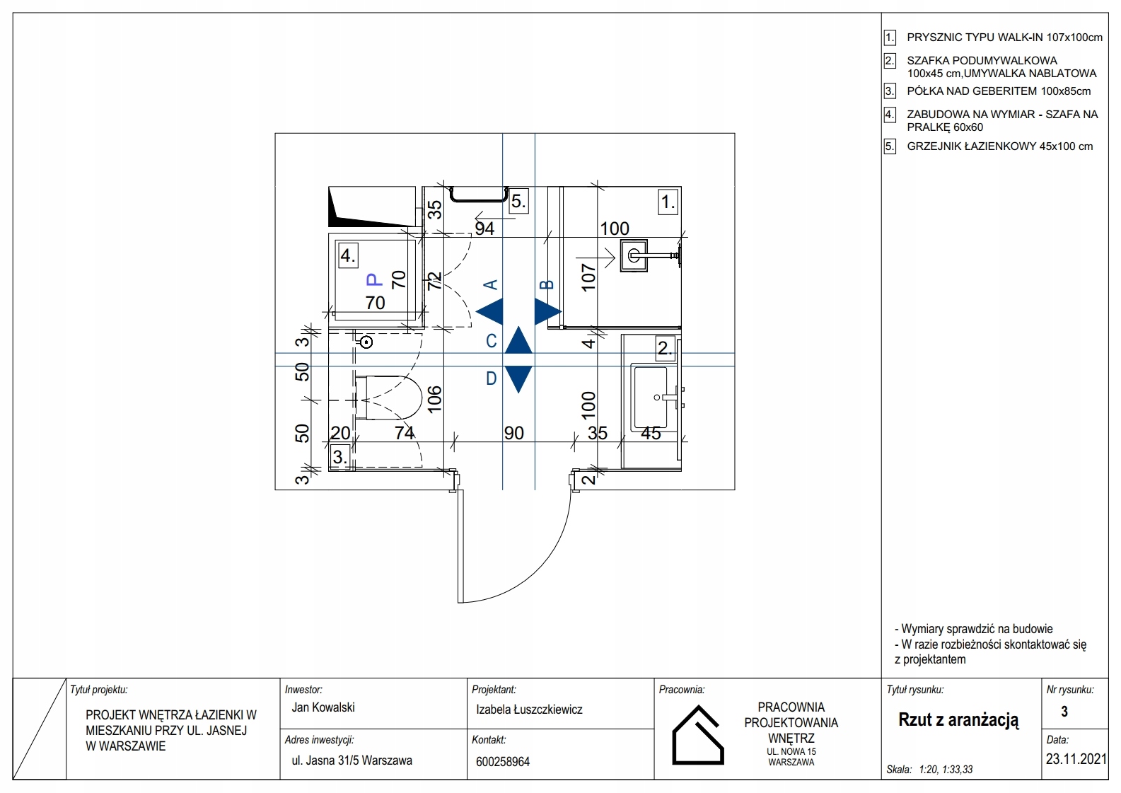 Witam Was w kolejnym kursie Archcicada – zajmiemy się w nim projektem łazienki. Zaczniemy od samego początku – inwentaryzacji, gdzie zostanie pokazany stan istniejący. Następnie przejdziemy do koncepcji, czyli ułożenia wszystkich elementów w pomieszczeniu, wstawimy dodatkowe modele do programu. Dalej skupimy się na przygotowaniu dokumentacji projektowej – stworzymy rysunki takie jak rzut z aranżacją, schemat ułożenia podłóg, rzut sufitów podwieszanych, określimy lokalizacje wszystkich instalacji – wodnych i elektrycznych. Podczas kursu dowiecie się też jak zaprojektować rozkład płytek w pomieszczeniu – rozrysować na widokach ścian a także przełożyć to na model 3D. Po przygotowaniu całego projektu skupimy się na zapisaniu wszystkiego do formatu pdf, a przy tym zobaczymy jak sprawnie przygotować swoje arkusze, korzystać z autotekstu i stworzyć swoją tabelkę rysunkową. Na koniec model 3D, nad którym pracowaliśmy w trakcie kursu posłuży nam do przygotowania wizualizacji.