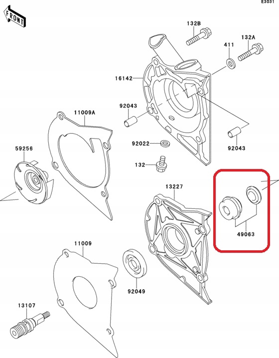 NA RYCINIE POKAZANO UMIEJSCOWIENIE W POMPIE WODY KAWASAKI GPZ / KLE / EN / ER5