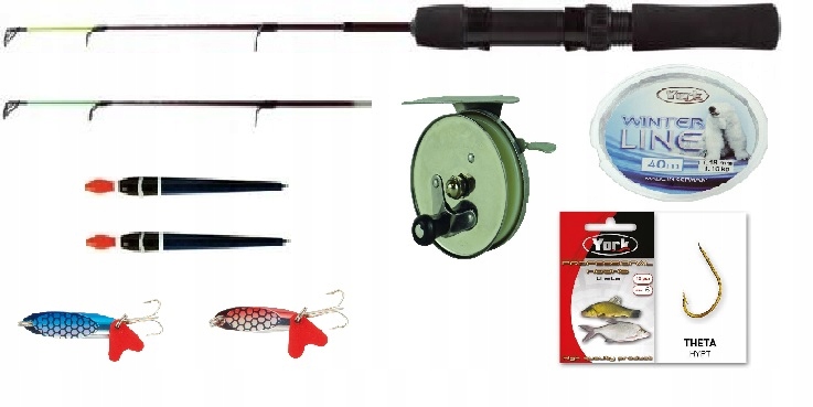 KOŁOWROTEK YORK ICE FIRST - podstawowy prosty kołowrotek wykonany z metalu z nawiniętą żyłką zimową