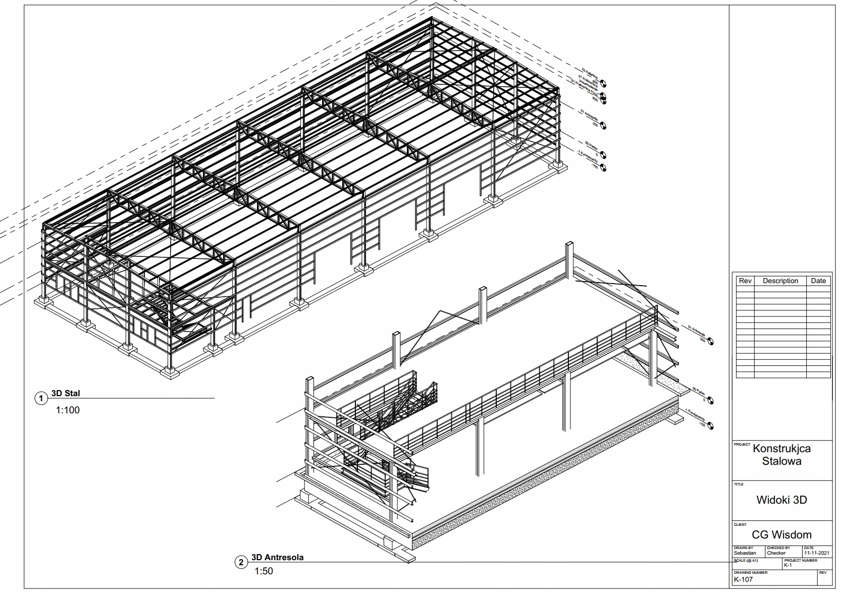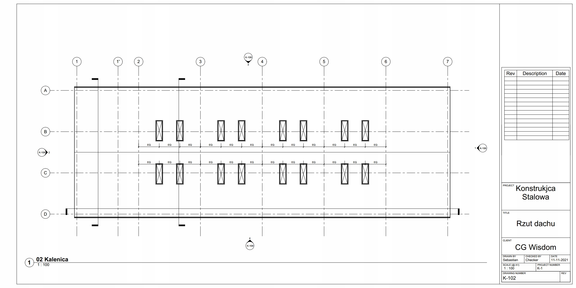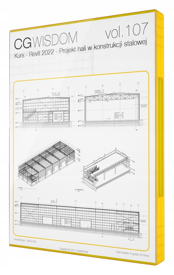 Kurs "Revit 2022 - konstrukcje stalowe" przedstawiony został proces tworzenia projektu hali w konstrukcji stalowej.