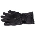 Sportowe rękawice skórzane wykonane w całości z wytrzymałej i elastycznej skóry licowej. Specjalne ochraniacze z włókna węglowego i piankowe ochraniacze gwarantują ochronę dłoni i palców. Wewnętrzna część rękawicy posiada zamszowe wstawki które zapewniają przyczepność i pewność uchwytu. Drobne wstawki z perforowanej skóry zapewniają wentylację i komfort użytkowania podczas jazdy w ciepłe dni.