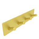 Wieszak z 4 haczykami wykonany z solidnej stali nierdzewnej w kolorze mosiądzu. Idealnie dopełnia wystrój nowoczesnej łazienki i kuchni, będąc praktycznym dodatkiem również w przedpokoju i garderobie. Dzięki bardzo wytrzymałej taśmie dwustronnej zamontujesz go bez konieczności wiercenia dziur w ścianie. Rozmiar podstawy 45 x 180 mm oraz 3 mm. grubości. Cena dotyczy 1 sztuki wieszaka.