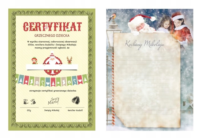 Niech te Święta Bożego Narodzenia będą radosne i przyjemne dla wszystkich dzieci. Mamy nadzieję, że po przeczytaniu listu - Mikołaj przyniesie wymarzone prezenty dzieciom :-) Jeżeli będą Państwo potrzebowali więcej listów do Świętego Mikołaja lub Certyfikatów Grzecznego Dziecka czy listów od Mikołaja, nic straconego każdy otrzyma również ulotkę z kodem dostępu do portalu, skąd za darmo pobierze dowolną ilość wspomnianych listów czy certyfikatów.