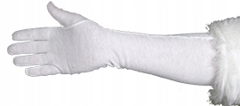 Oferujemy w zestawie specjalne, długie rękawiczki dla Świętego Mikołaja. Rękawiczki to ważny dodatek do stroju Mikołaja dzięki, któremu Mikołaj nigdy nie zostanie zdemaskowany, dodatkowo rękawiczki podnoszą elegancję przebrania. Wykonane są z bawełny w kolorze białym. Rękawiczki Świętego Mikołaja są długie aż do łokci, dzięki czemu dłonie wyglądają odświętnie oraz nie ma przerwy między rękawem a dłonią.
