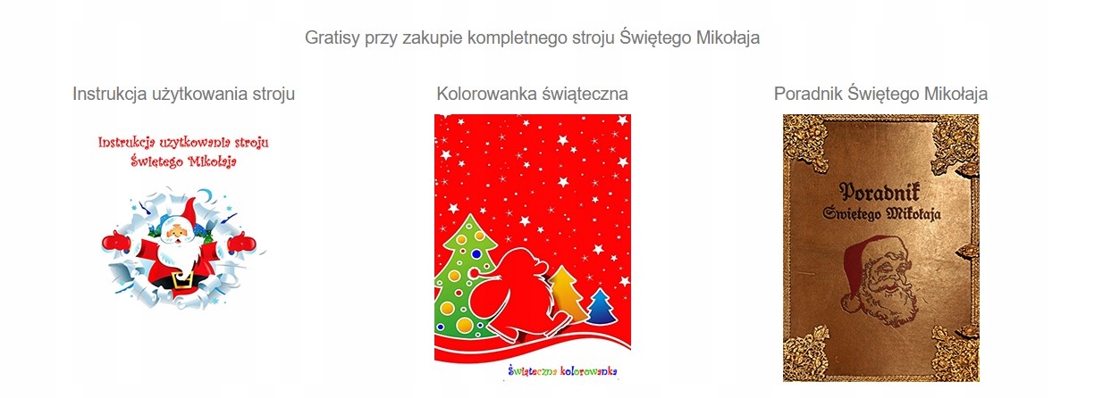 Przekonaj się sam, kup kompletny strój, zostań Świetnym Mikołajem - radość na buzi każdego dziecka gwarantowana :-) Jeżeli 3 egzemplarze to za mało, nic nie szkodzi, w paczce będzie ulotka z kodem dostępu do portalu, skąd za darmo pobierzecie Państwo dowolną ilość wspomnianego certyfikatu jak również listów do Mikołaja, a nawet nowość gotowy list od Mikołaja, wystarczy tylko wpisać kilka niezbędnych słów!