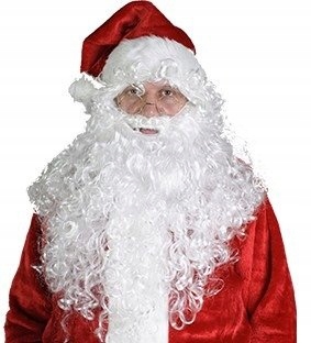 Парик изготовлен из очень качественная синтетическая щетина, имитирующая шелк. Волосы Санты густые и очень длинные, они падают на туловище. Ее внешний вид естественный, волосы укладываются в тонкие локоны. Именно за бороду тянут чаще всего детей, когда они сидят на коленях у Деда Мороза. К счастью, наша борода имеет прочную резинку, удерживающую ее на месте. Резинку надеваем через уши, и все блокируем парик и шапку.