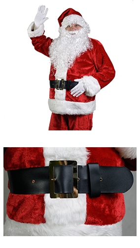 Длина ремня позволяет застежка даже на самом большом животе Санты. Большое количество отверстий гарантирует посадку для каждой цепи. Прочный и широкий пояс точно сочетается с широкими петлями в Кубраке Святого Санта-Клауса. Ремень изготовлен из эко кожи, ремень черного цвета, с пряжкой золотого цвета. Пряжкаидеально сочетается с колокольчиком и окуляром, так что наряд представляет собой единое целое.