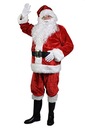 Spodnie Świętego Mikołaja są w kolorze czerwonym. Model tzw. 3/4 sięgający do połowy łydek. Spodnie wchodzą w nakładki na buty tworząc integralną całość. Wykonane z grubego, czerwonego i puszystego materiału dla każdego profesjonalnego Mikołaja. W pasie posiadają gumkę, dzięki czemu dopasują się do każdej figury. W dolnej części, przy nogawkach są luźne, co czyni łatwiejszym w dopasowaniu do nakładek na buty lub butów Mikołaja. Spodnie w rozmiarze uniwersalnym L/XL. Szerokość w pasie i udach wystarczająca dla każdego mężczyzny.
