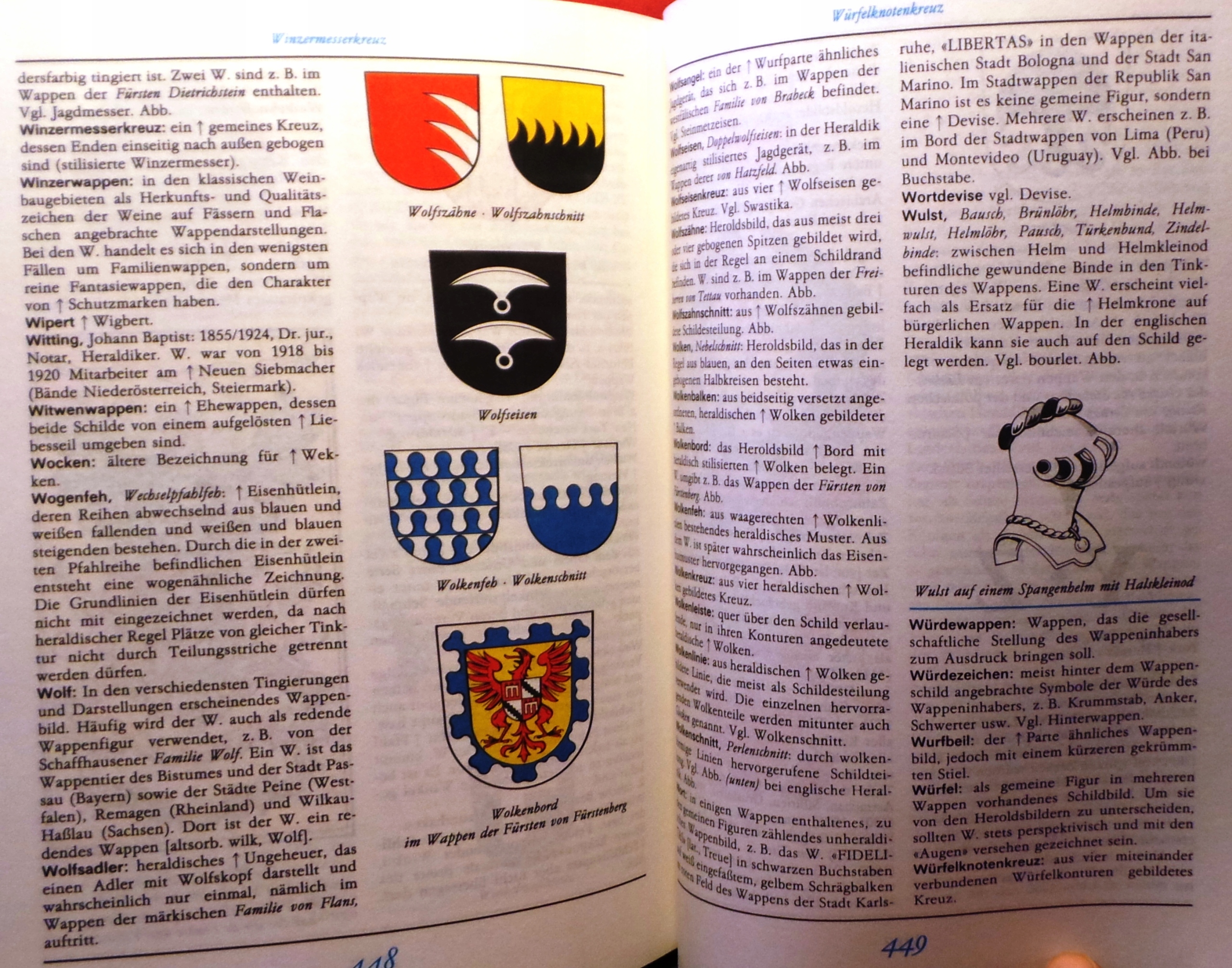 Wydawca: VEB Bibliographisches Institut Leipzig, Leipzig 1984, wydanie I. 478 stron, rysunki (barwne) herbów rodowych, osobistych i ziemskich, oprawa twarda płócienna z obwolutą, format 18x25 cm.