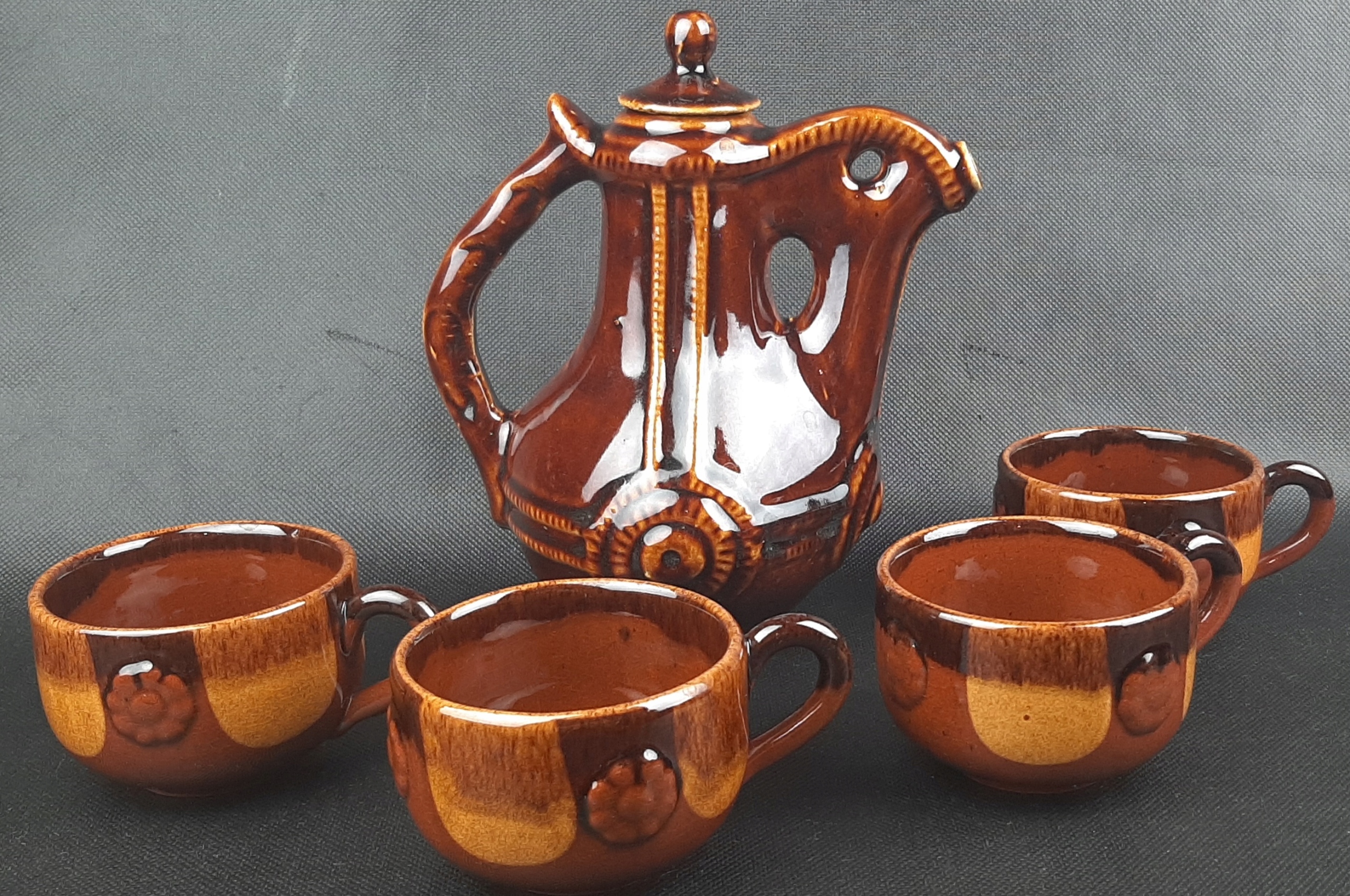 Aukcja dotyczy kompletu - dzbanek i 4 filiżanki