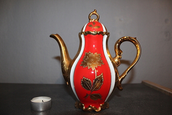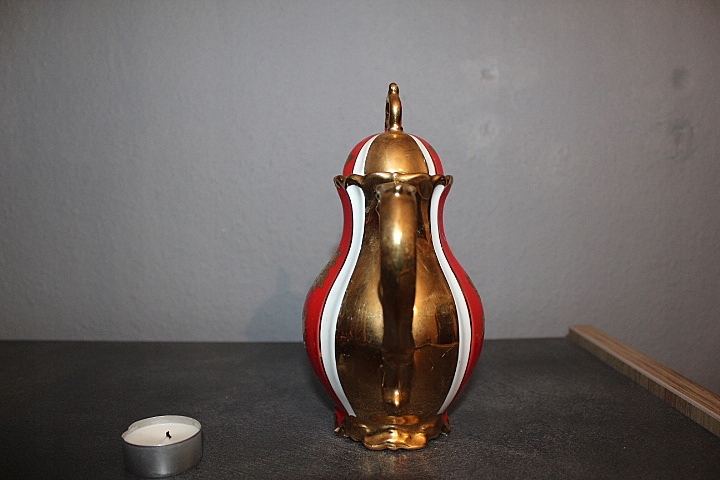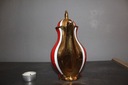 STARY OKAZAŁY MAŁY DZBANEK,POMARAŃCZOWO -ZŁOTY DEKOR, RELIF SYG.RIEBER