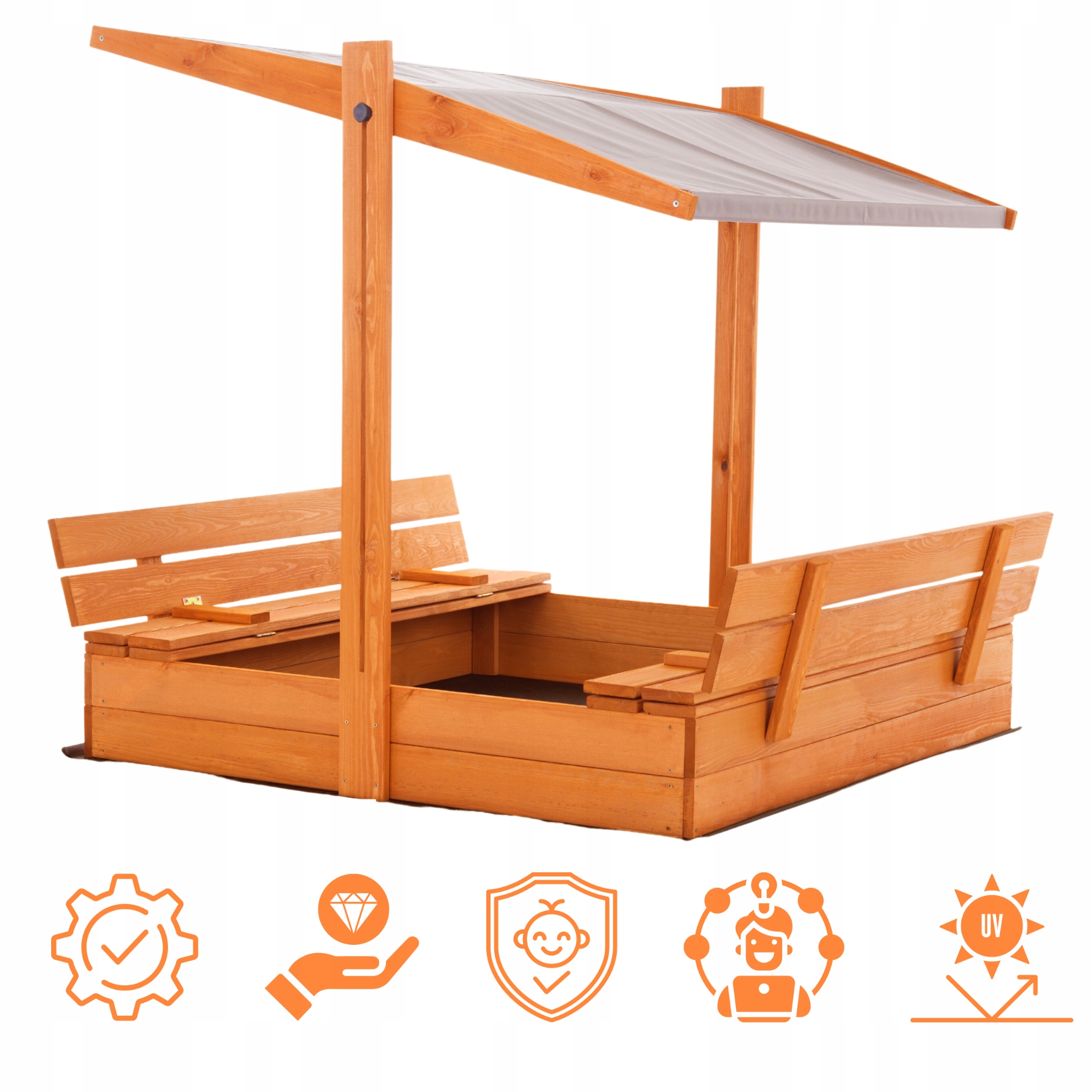 ✅ Он изготовлен из высококачественного сухого сертифицированного сосна. Для дополнительной безопасности ваших детей в досках были округлые, а плоскость охлопанная и отшлифованная. Песочница-безопасная игровая площадка для детей.