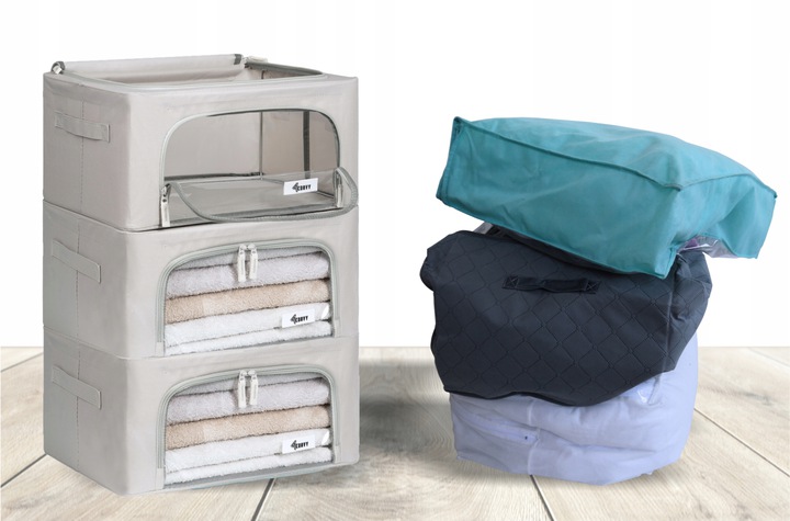 ➾ ORGANIZERY NA UBRANIA W KOLORZE SZARYM I GRANATOWYM, ODPOWIADAJĄCE DESIGNEM POJEMNIKOM