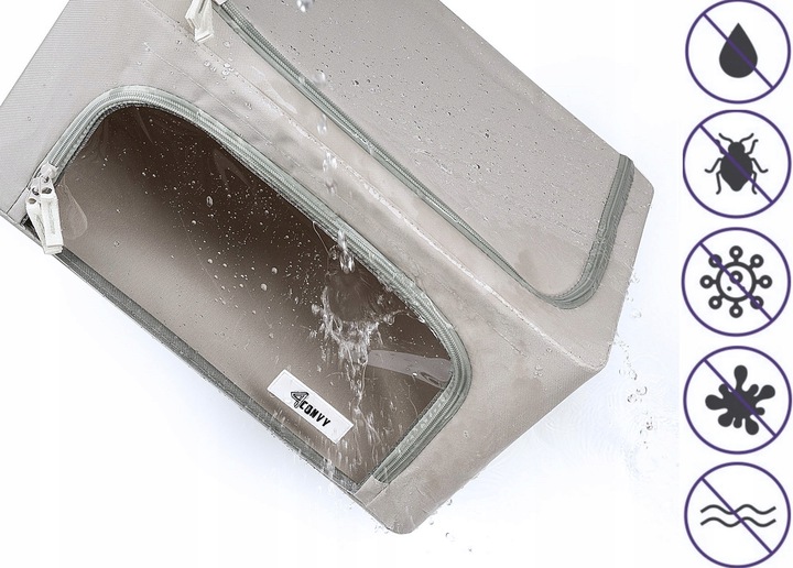 Nie musisz już obawiać się, że wilgoć na strychu zaszkodzi Twoim ubraniom lub że zostaną one uszkodzone przez mole. Pojemniki 4CONVY wykonane z trwałego materiału OXFORD, używanego do produkcji namiotów, w połączeniu ze stalą, stanowią doskonałą ochronę przed wilgocią, szkodnikami, kurzem, brudem i nieprzyjemnymi zapachami. W przeciwieństwie do tradycyjnych pudełek i toreb, te pojemniki minimalizują powstawanie wilgoci, co chroni Twoje rzeczy przed możliwością rozwoju pleśni, zwłaszcza w warunkach niskich temperatur.