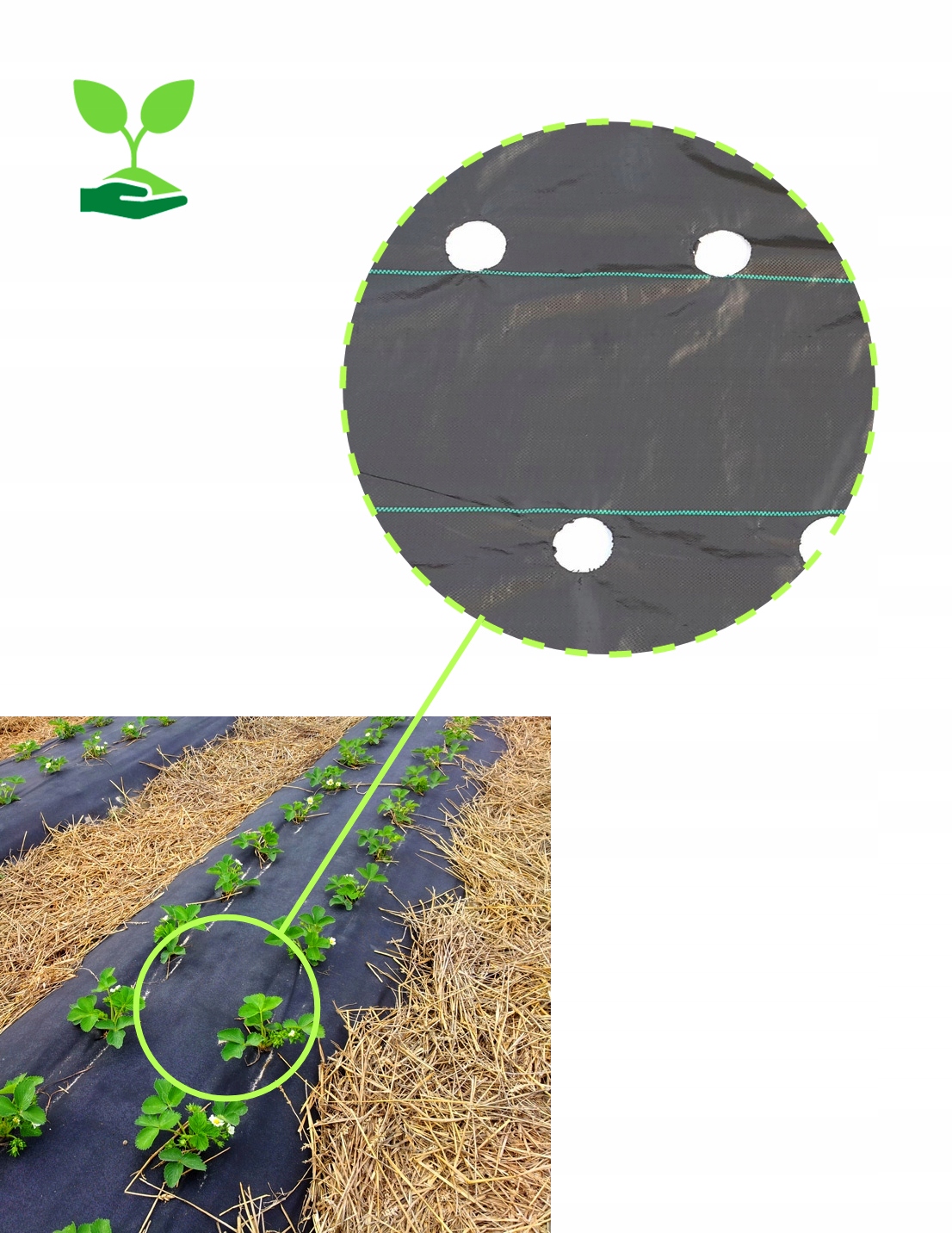 AGROTKANINA UV z gotowymi otworami pod sadzonki truskwek, ogórków, sałtaty, pomiadorów i innych.