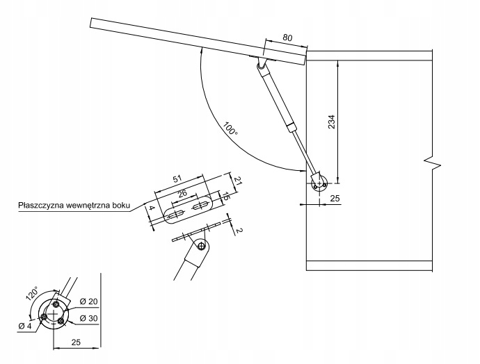 PODNOŚNIK GAZOWY 120N (PNEUMATYCZNY) DO FRONTÓW MEBLOWYCH