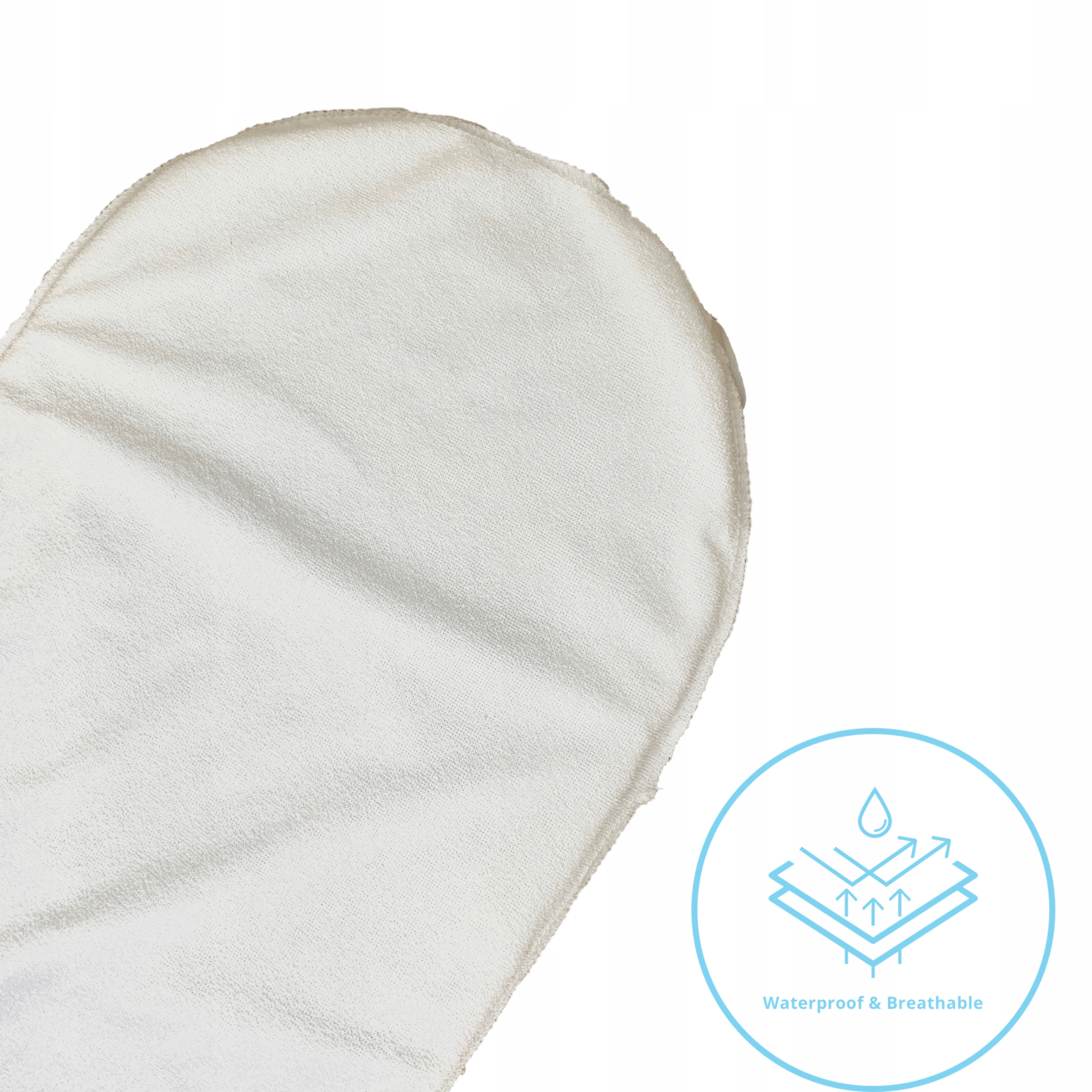 Nieprzemaklany podkład na materacyk pod prześcieradło 75x30cm. Uszyty z bawełny frotte z membraną. Tkanina nieprzemakalna oddychająca dzięki temu dziecko chroni przed odparzeniom.
