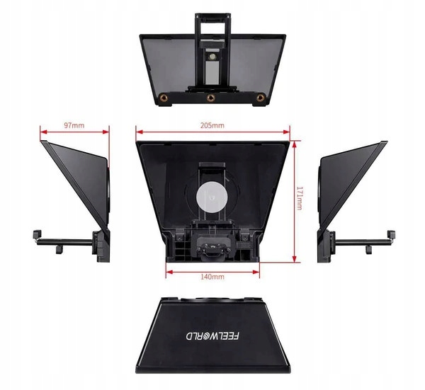 Teleprompter jest wyposażony w otwór montażowy o standardowym rozmiarze 1/4, który można podłączyć do dowolnego statywu, statywu oświetleniowego itp.