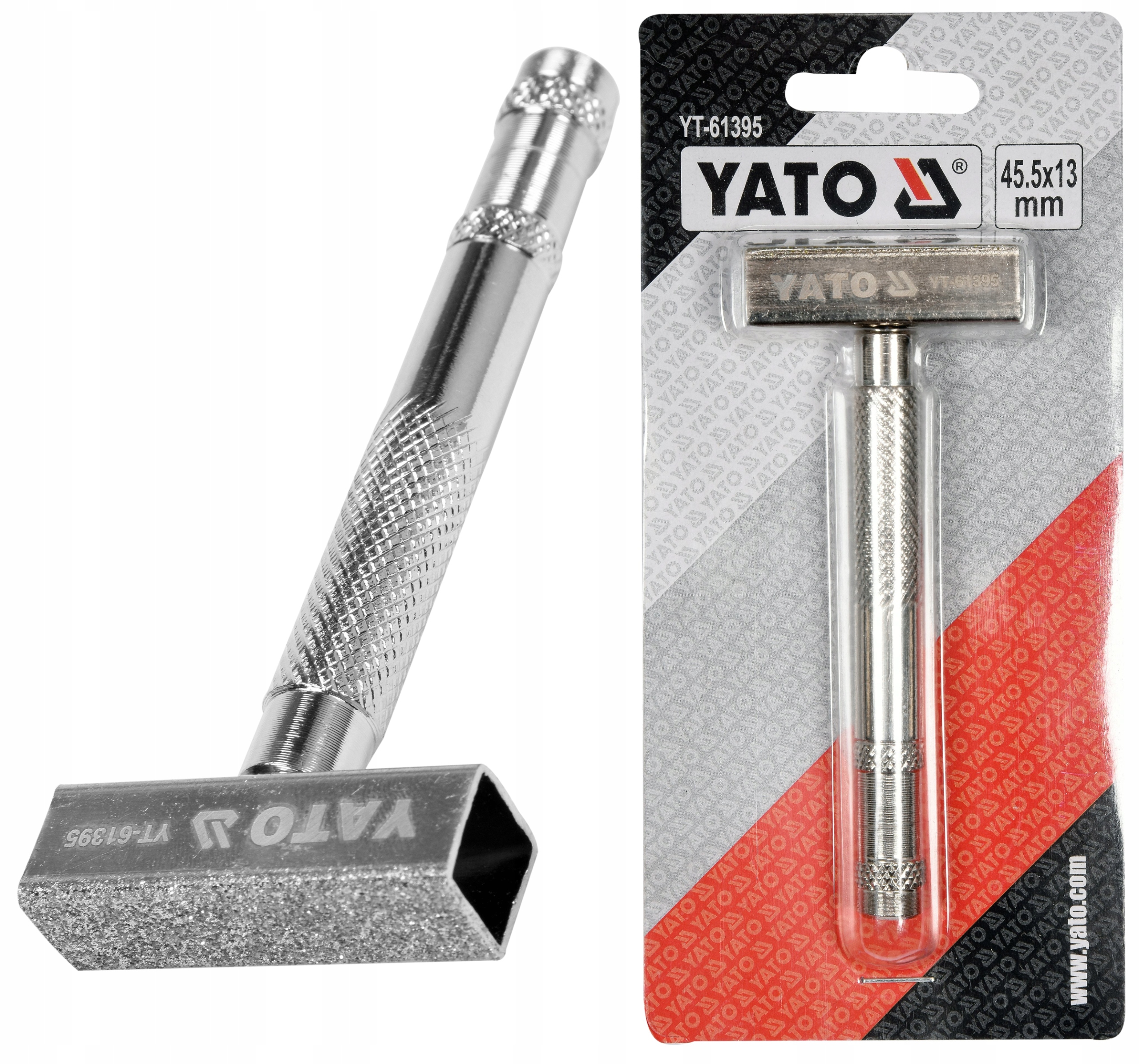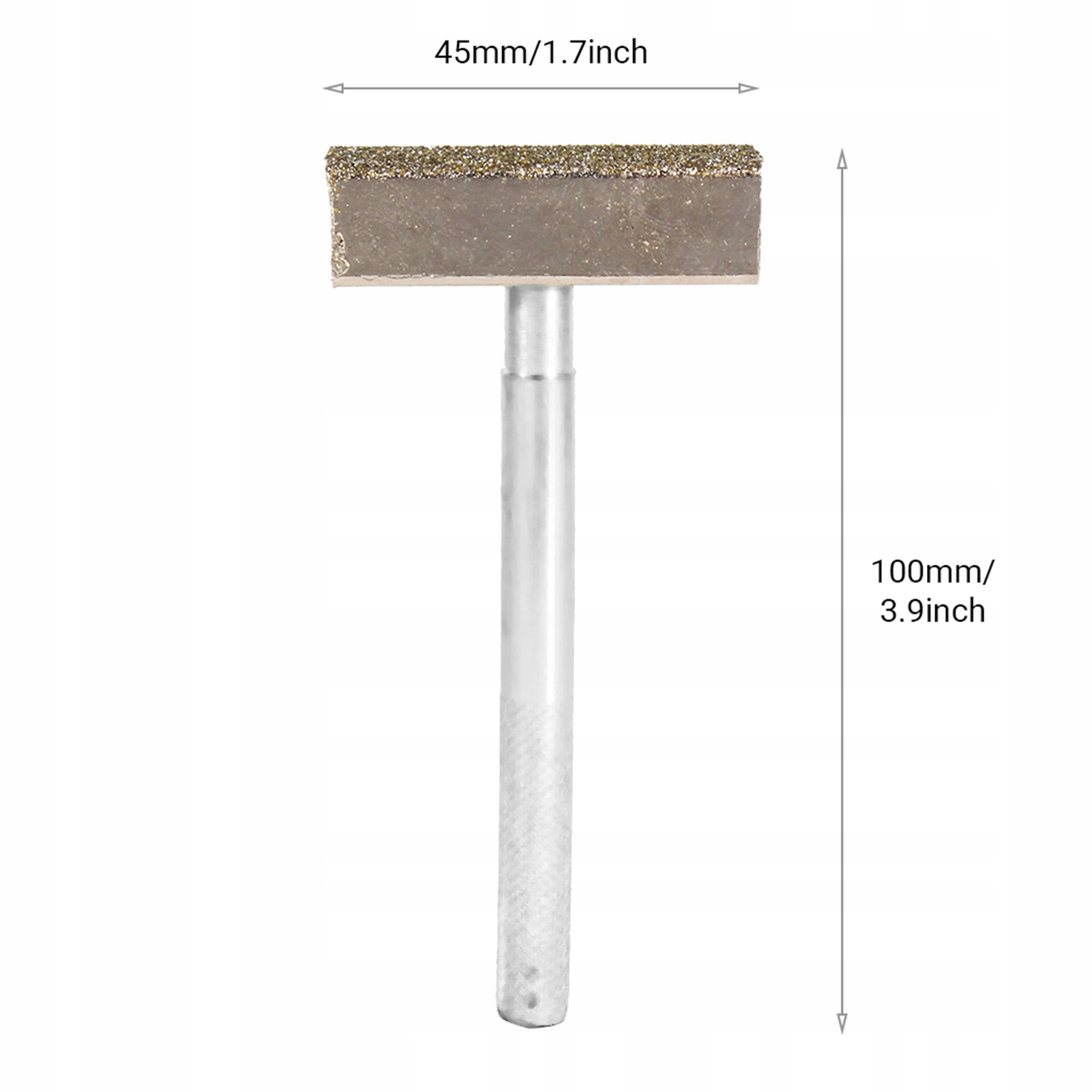 Powierzchnia ścierna, zawierająca ziarna syntetycznego diamentu ma powierzchnię 45,5 x 13 mm. Korpus i uchwyt przyrządu wykonane są z metalu, uchwyt wkręcany i moletowany.