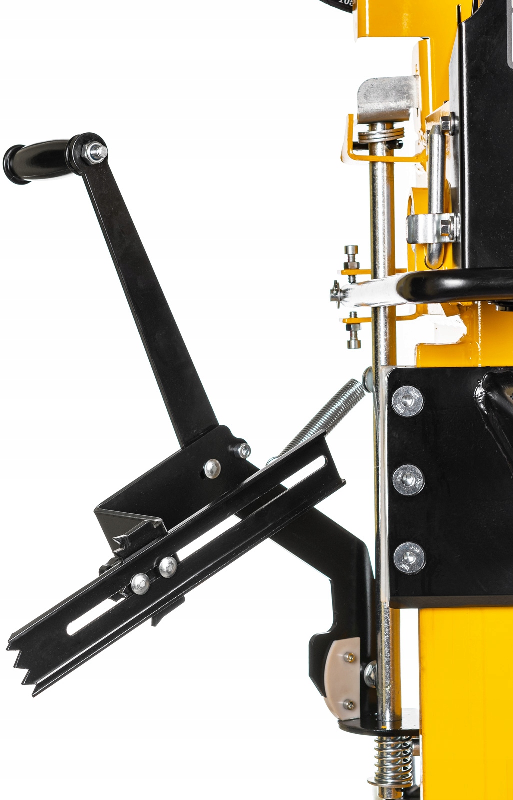 Pracę ułatwia również dwustopniowa regulacja prędkości pracy (6 oraz 2,9m/min). Istnieje również możliwość montażu klina, który rozłupuje drewno na cztery części.
