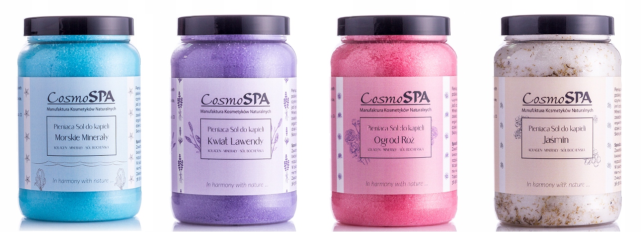 Seria tych soli wyróżnia się wyjątkowo bogatym składem minerałów i mikroelementów tj . wapno, magnez, brom, cynk, jod i potas oraz szerokim wyborem zapachów i kolorów do wyboru.