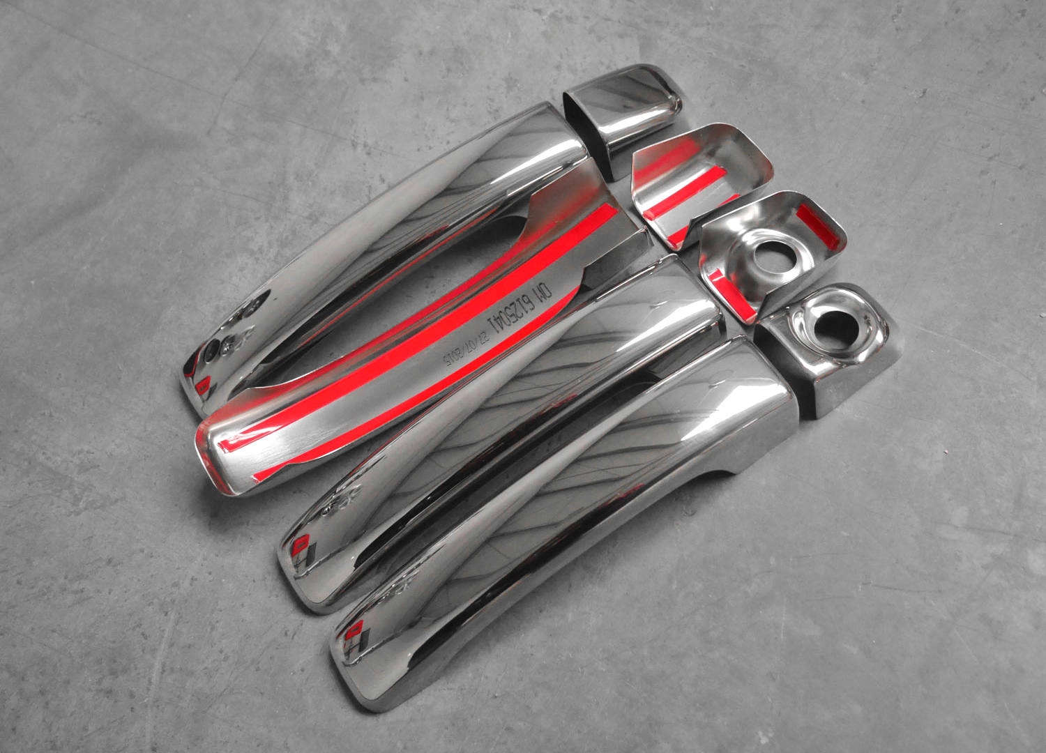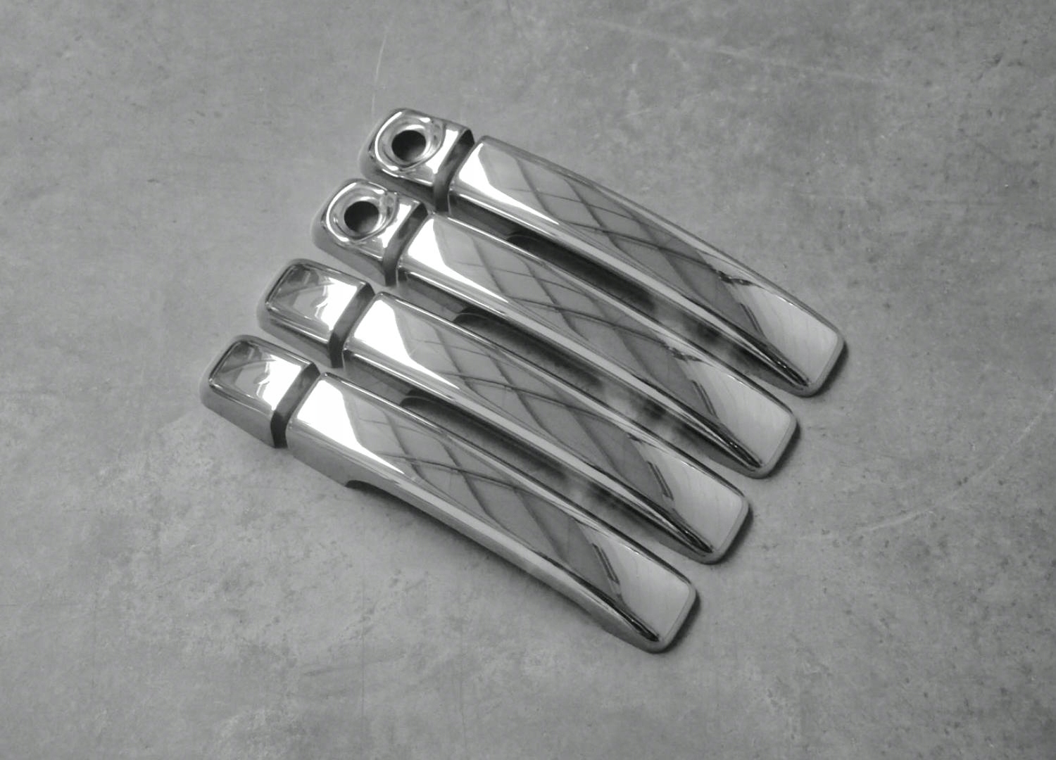 Chromowane nakładki na klamki wykonane z polerowanej stali nierdzewnej dodadzą elegancji oraz podkreślą wyjątkowy charakter Twojego auta, równocześnie chroniąc lakier przed zarysowaniem. Nakładki zostały wykonane z najwyższej jakości stali nierdzewnej odpornej na warunki atmosferyczne. Dbałość o najmniejsze szczegóły wykonania sprawia, że nasz produkt to elegancja pod każdym względem.