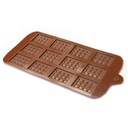 Forma od wewnętrznej strony pokryta jest gładką warstwą silikonu, który zapobiega przywieraniu czekoladek do formy.