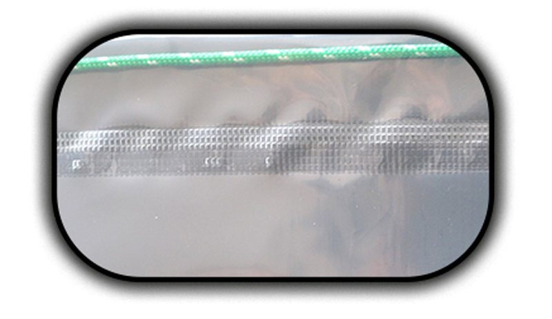 Gęsto żebrowana konstrukcja wykonana z wytrzymałego PCV, odpornego na warunki atmosferyczne oraz promieniowanie słoneczne. Dzięki temu materiał nie kruszeje, nie traci swoich właściwości a co najważniejsze nie koroduje.