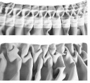 Zasłona uszyta wraz z taśmą marszczącą typu smok. Marszczenie pełne 1:2,5. Boki zasłony obszyte listwą 2 cm, Dzięki temu boki zasłon nie będą zmarszczone a zasłona pięknie się prezentuje. Rogi wykończone kopertowo co zapobiega odrywaniu się tkaniny podczas użytkowania. Poniżej zdjęcia pokazujące rzeczywisty stopień marszczenia oraz wykończania.