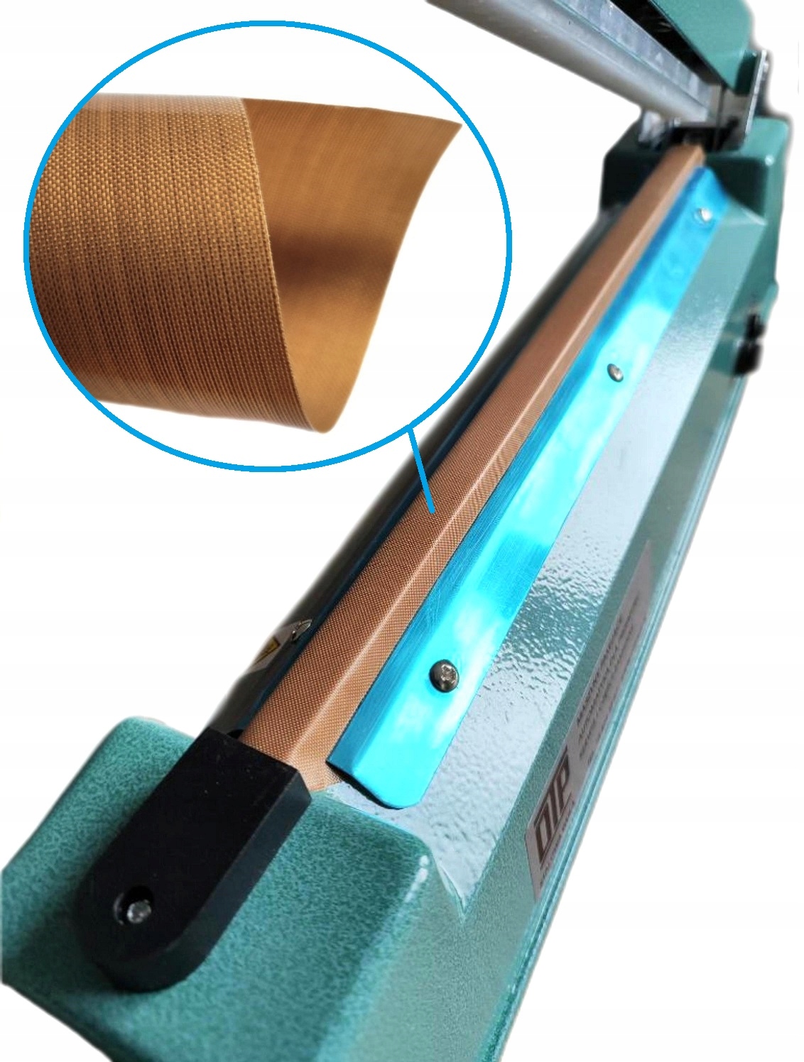 Teflon zapobiega przyklejaniu się folii do elementów grzejnych (elektrody) w procesie zgrzewania.