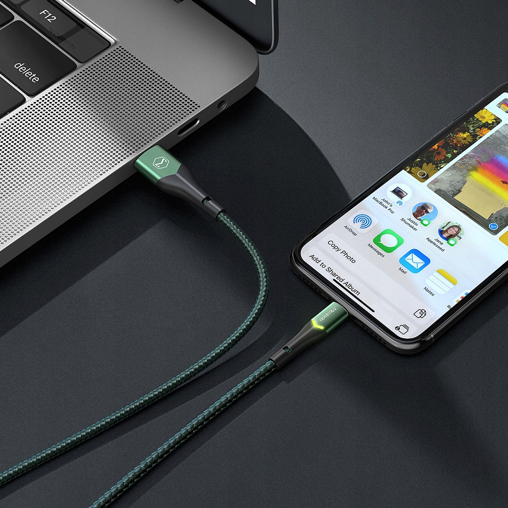 Dzięki wbudowanym LEDom w końcówce kabla, łatwo zlokalizujesz go w ciemności i podłączysz swoje urządzenia. Nie szukaj po omacku zaufaj zielonej kropce :)