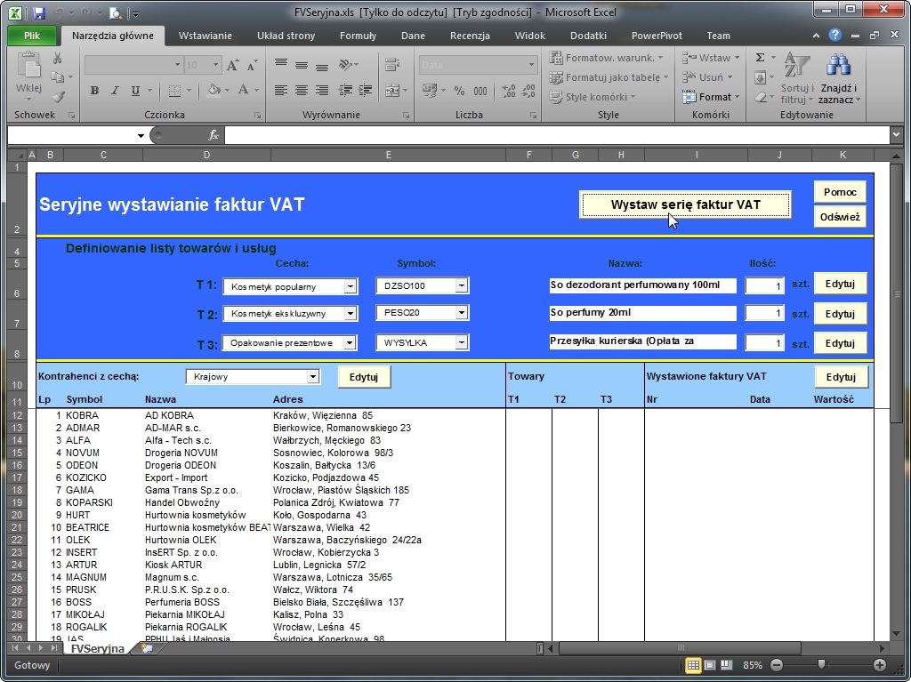 Opierając się na Sferze dla Subiekta GT można również stworzyć mechanizmy wykonywania operacji zbiorczych, mogą to być na przykład: