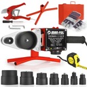 Matryce grzewcze dołączone do zestawu pozwalają na pracę z rurami o średnicach 16mm, 20mm, 25mm, 32mm, 40mm, 50mm oraz 63mm. Każda matryca pokryta jest powłoką teflonową co zapewnia wysoką jakość połączeń.