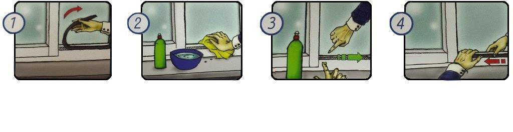 Перед установкой прокладки необходимо промыть раму и створку оконные водой с жидкостью для удаления скопившейся грязи (фото № 2).