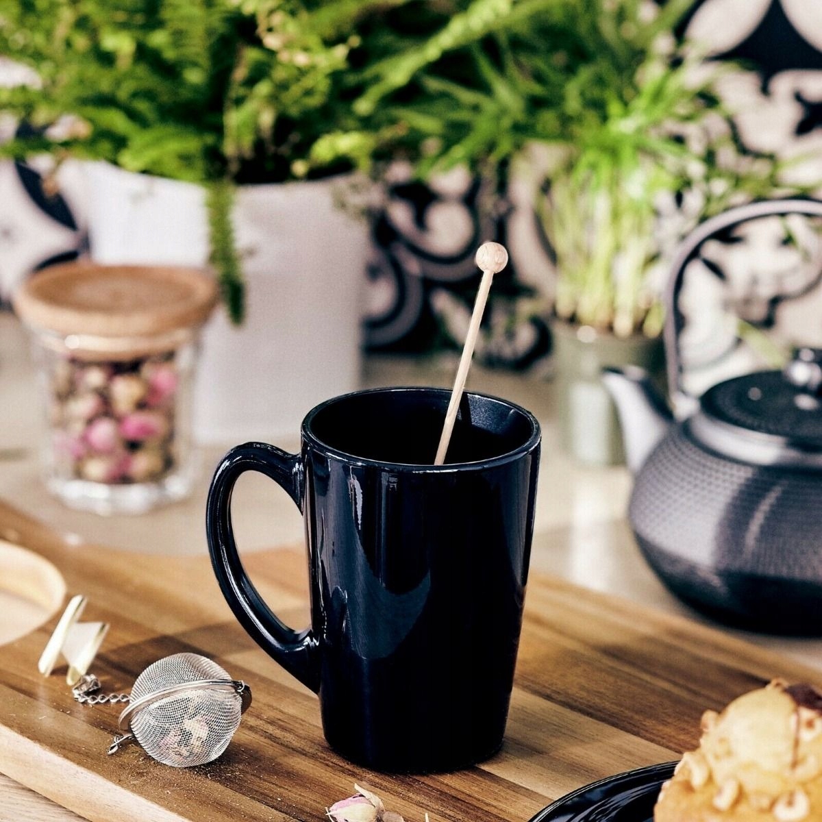 Aby kompletnie wyposażyć jadalnię w zestawie otrzymujesz także 6 kubków czarnych w takim samym wzorze jak talerze!