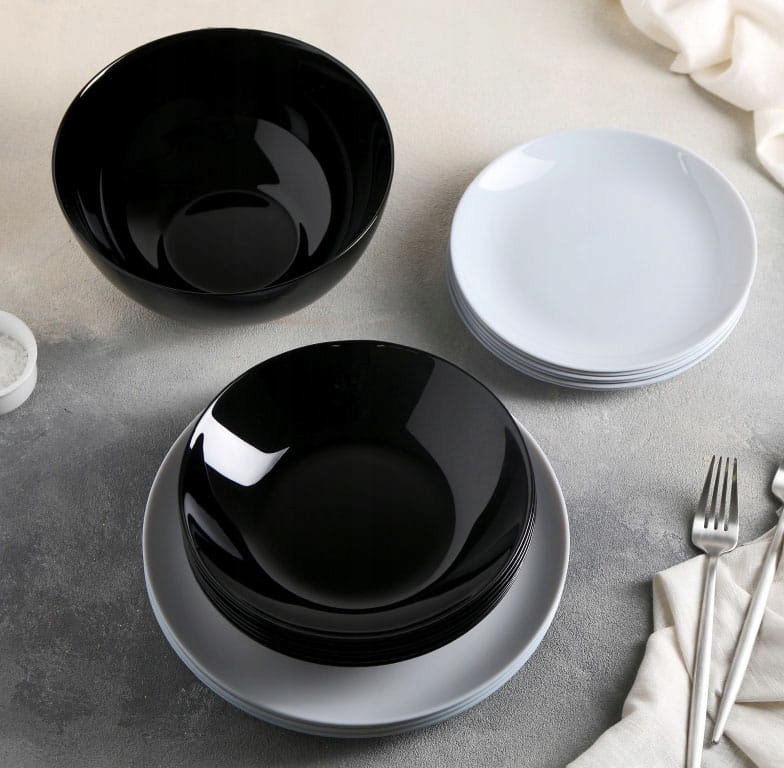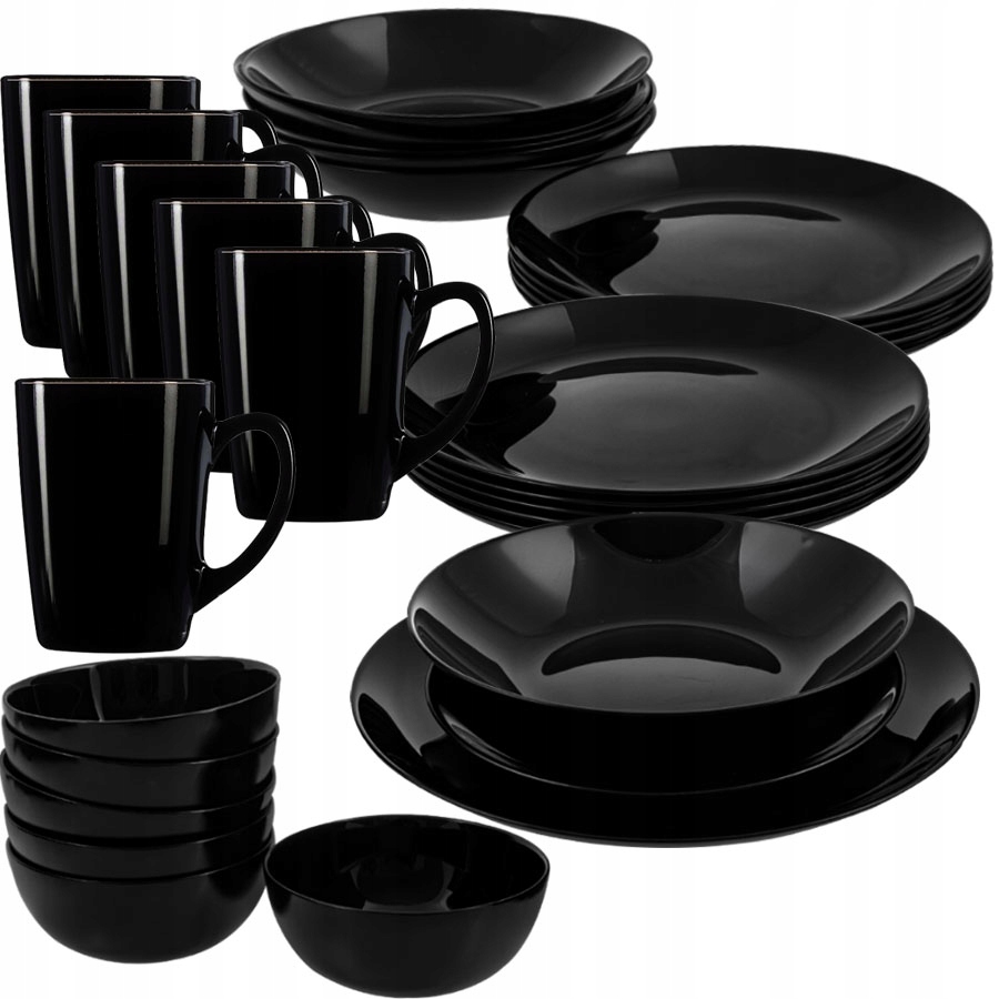 Serwis obiadowy w głębokim czarnym kolorze nie tylko przyciąga uwagę, ale też doskonale się prezentuje na stole. Wykonany z wysokiej jakości szkła hartowanego, które jest odporne na uszkodzenia i stłuczenia. Jest bardzo chętnie wybierany przez naszych klientów.
