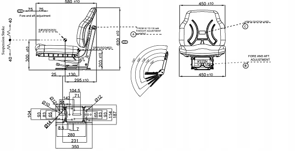 Podstawa jest dość szeroka i posiada kilkanaście otworów montażowych co zwiększa zastosowanie fotela w innych ciągnikach.