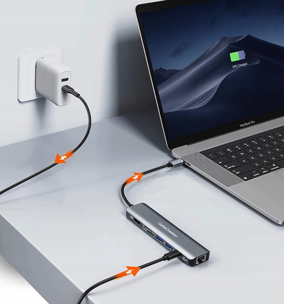 Chwytaj chwile, nie trać ich na korzystanie z Hubów, które obsługują wolne ładowanie. Oferowany Hub jest w pełni zgodny z standardem PowerDelivery i obsługuje zasilacze od 40W do 100W.