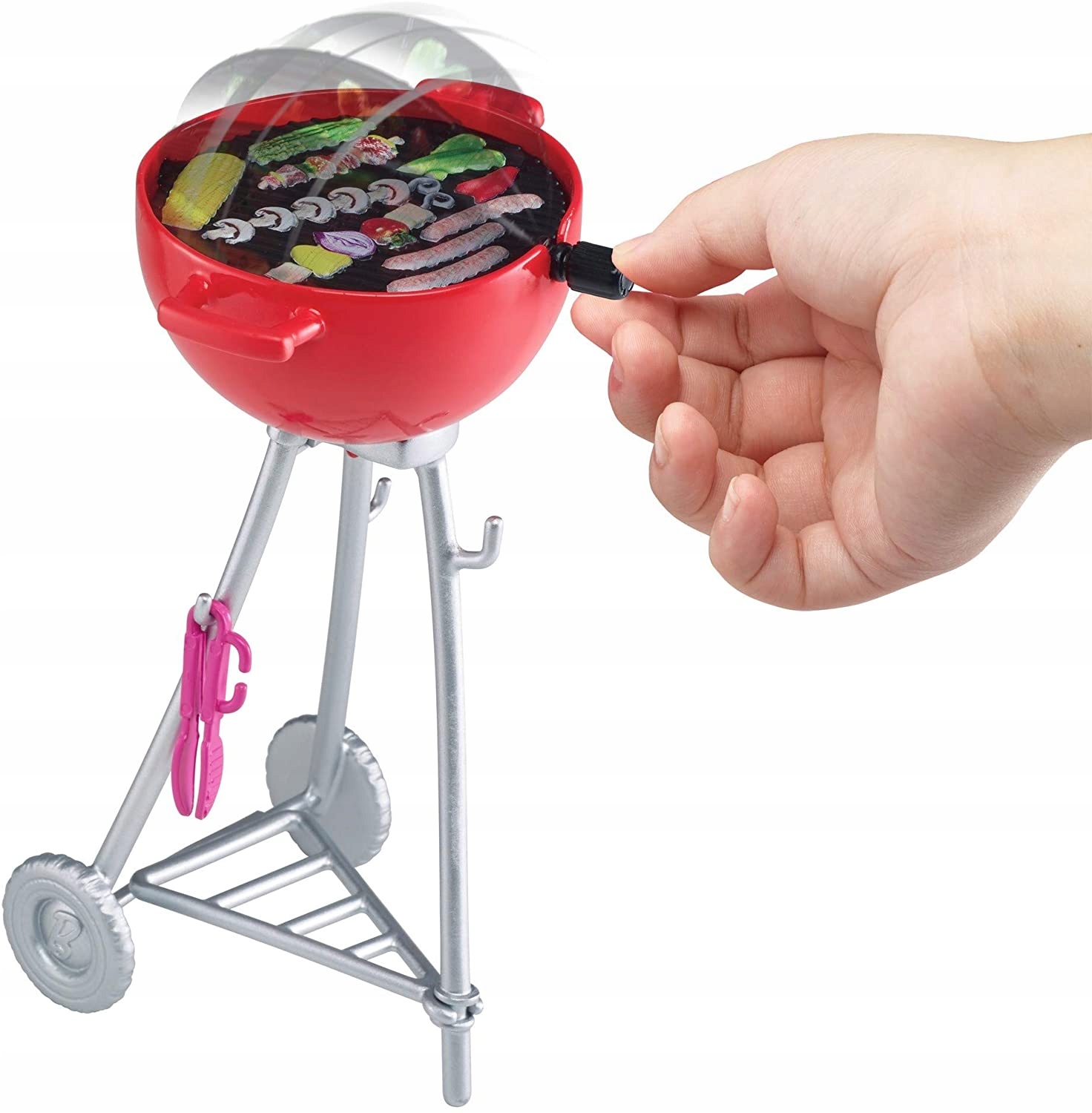 Akcesoria do opowiadania historii obejmują lodówkę, talerze do jedzenia, narzędzia do grillowania, przyprawy i akcesoria do napojów, niektóre z uchwytami, które może trzymać lalka.