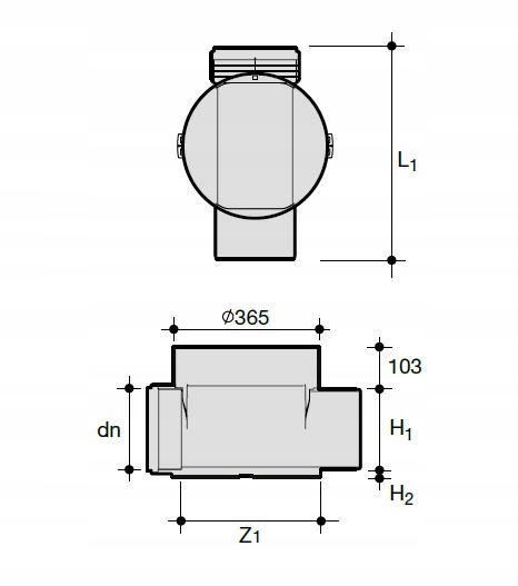 Wymiary kinety Ø315/110 przelotowej: