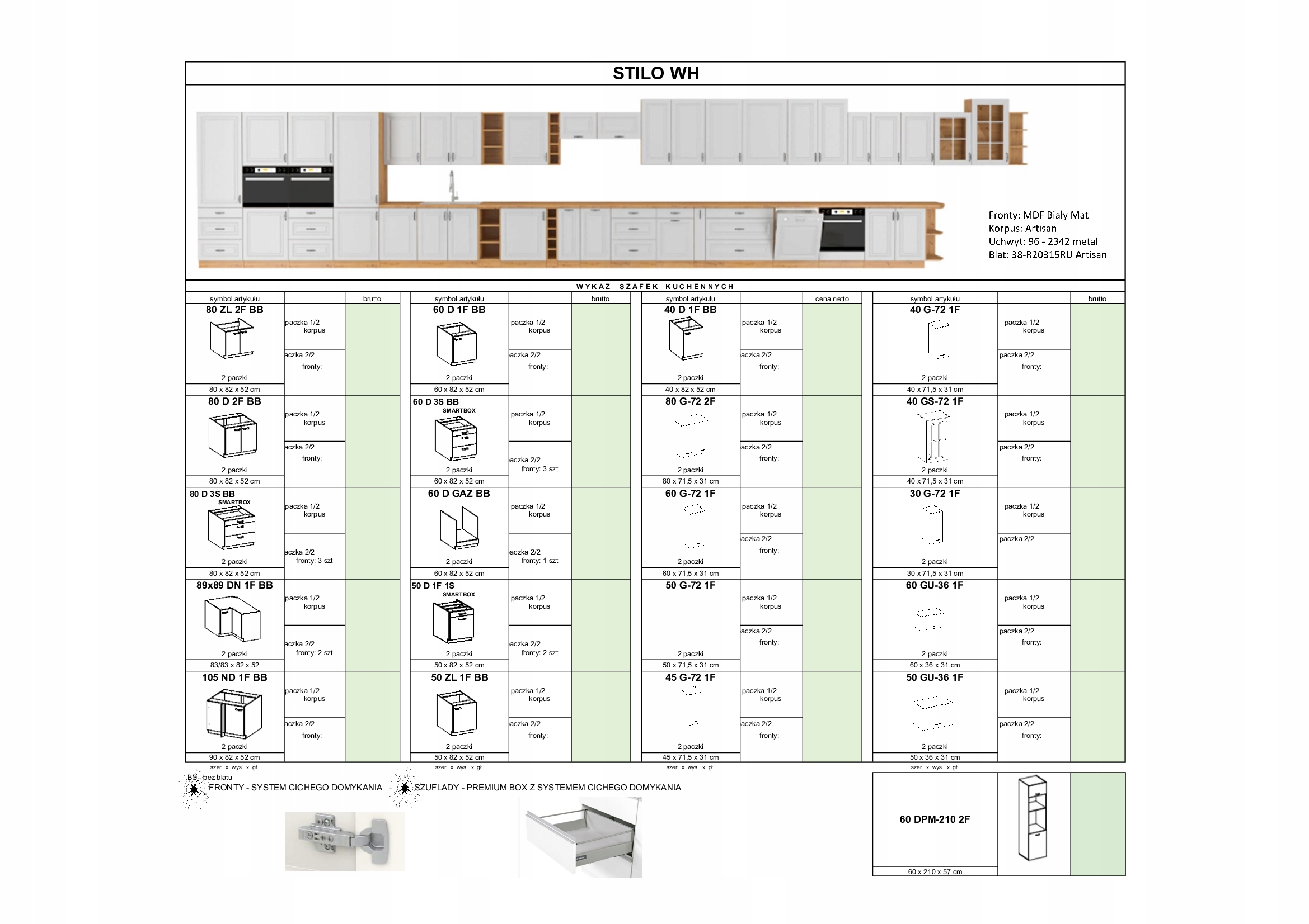 Нижние шкафы: 40 D 1F, 80 зл 2F BB, 15 D открытый BB, BB