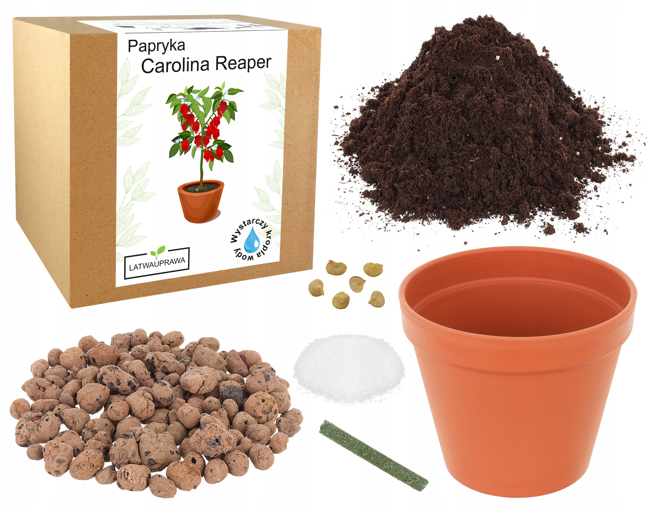 Гидрогель, который находится в это инновационное решение для хранения воды, которое постепенно отдает ее растению. Благодаря назад, даже если вы забудете поливать свои перцы, они будут иметь доступ к воде в течение длительного времени. Керамзит, легкий и пористый материал, улучшает воздухопроницаемость и водопроницаемость, защищая растения перед переливом. Все это делает выращивание Carolina Reaper еще проще и более эффективным.