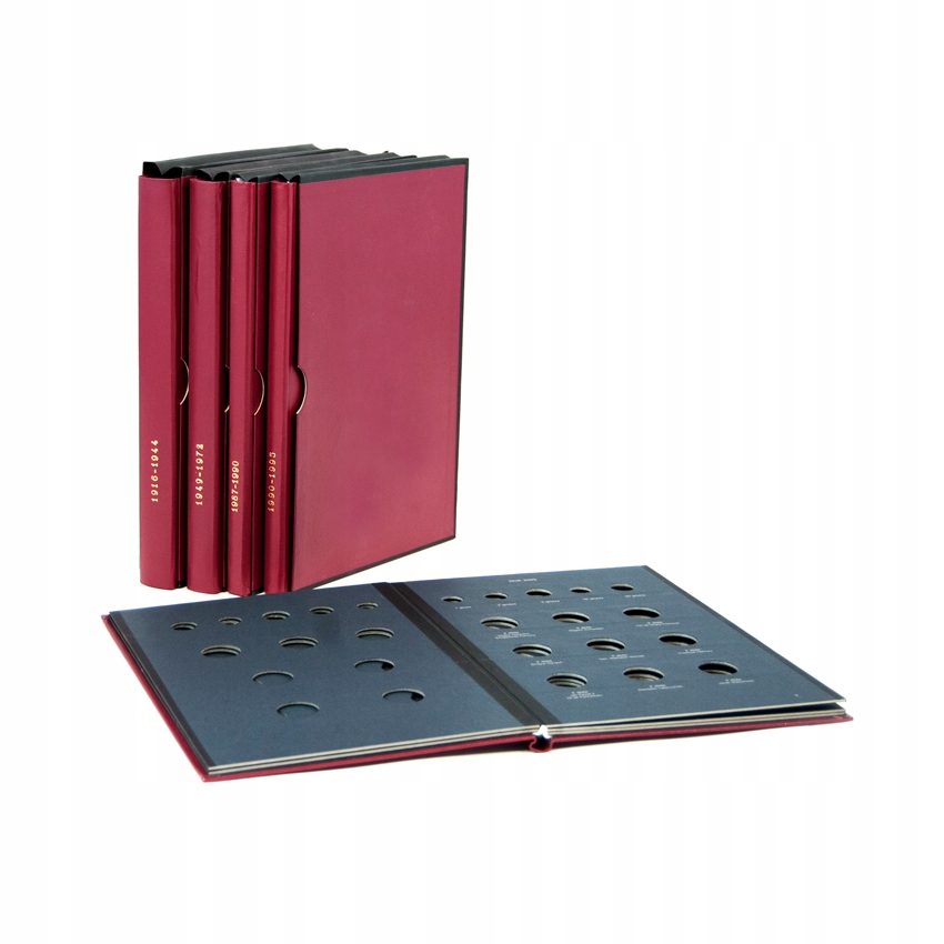 Każdy z tomów przeznaczony jest na zbiór monet obiegowych (nie lustrzanek) z określonych lat.Okładka i futerał w kolorze bordo.Karty klaserowe czarne,nadruki białe.Każda moneta ma swoje miejsce z określonym nominałem,rodzajem stopu,z którego jest wykonana.W przypadku niektórych monet zamieszczony jest też dodatkowo opis.Moneta umieszczana jest w wysztancowanym otworze o odpowiedniej średnicy i zabezpieczona z obu stron przeźroczystą wsuwką z twardego PCV.Brzegi kart zabezpieczone czarną lamówką.Podobnie brzegi futerału zabezpieczone są przed przecieraniem płótnem introligatorskim.