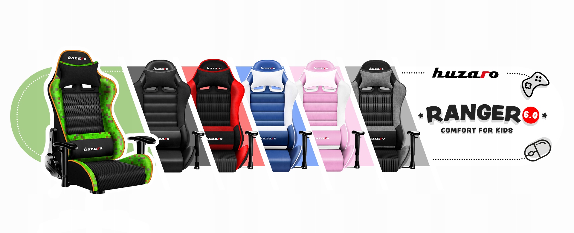 HUZARO RANGER to linia foteli gamingowych skierowanych do najmłodszych fanów gier komputerowych. Idealny do nauki i zabawy, model Ranger 6.0 ma w sobie wszystkie zalety naszego kultowego fotela Force 6.0, ale jego rozmiar został odpowiednio zmniejszony, aby zapewnić pełen komfort najmłodszym.