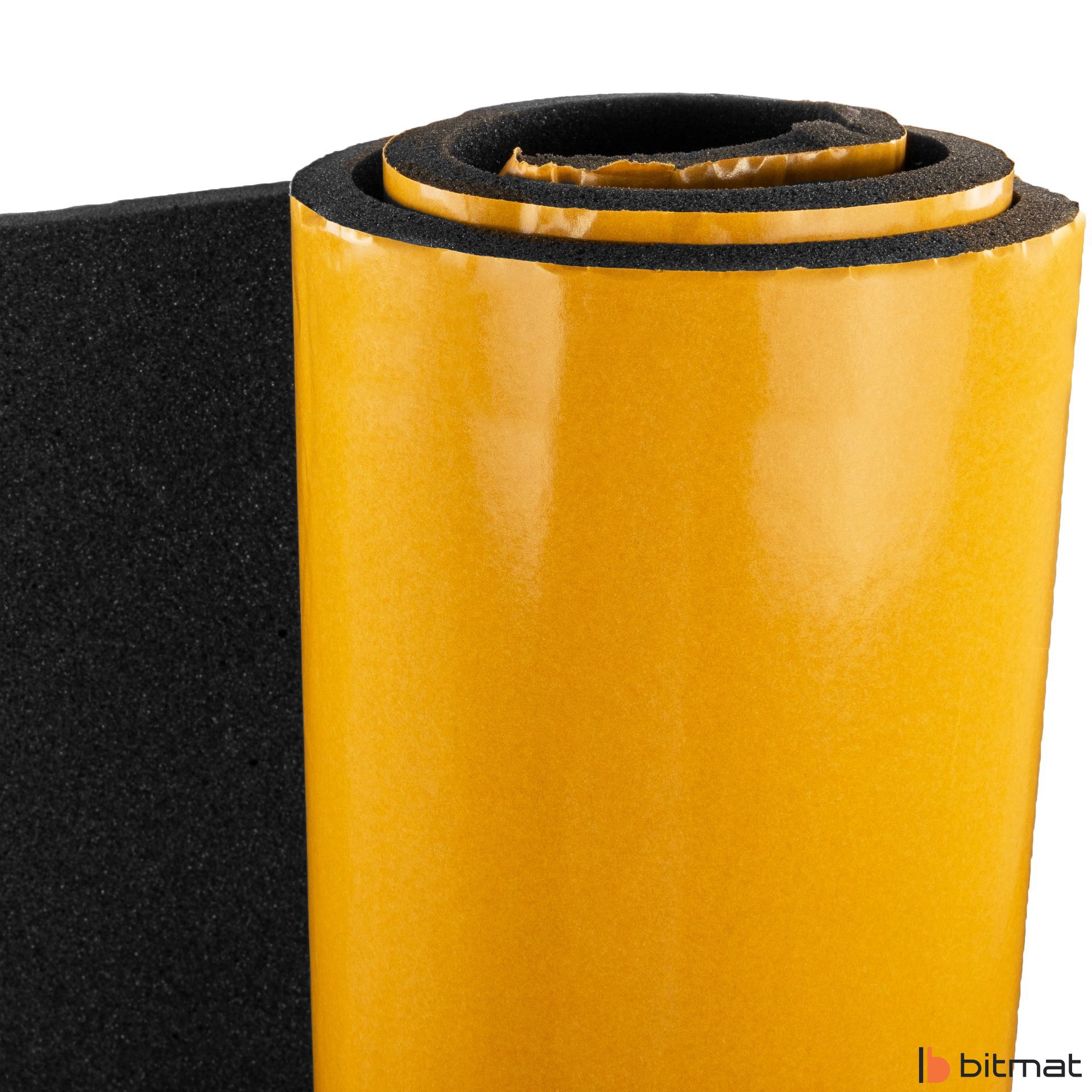 Bitmat M10s posiada klej naniesiony natryskowo, co sprawia, że pianka trzyma całą powierzchnią na przyklejanym elemencie. Daje pewność, że produkt jest porządnie zamontowany na poziomych i pionowych płaszczyznach. Samoprzylepność przyśpiesza czas pracy, nie musimy się brudzić z klejami.