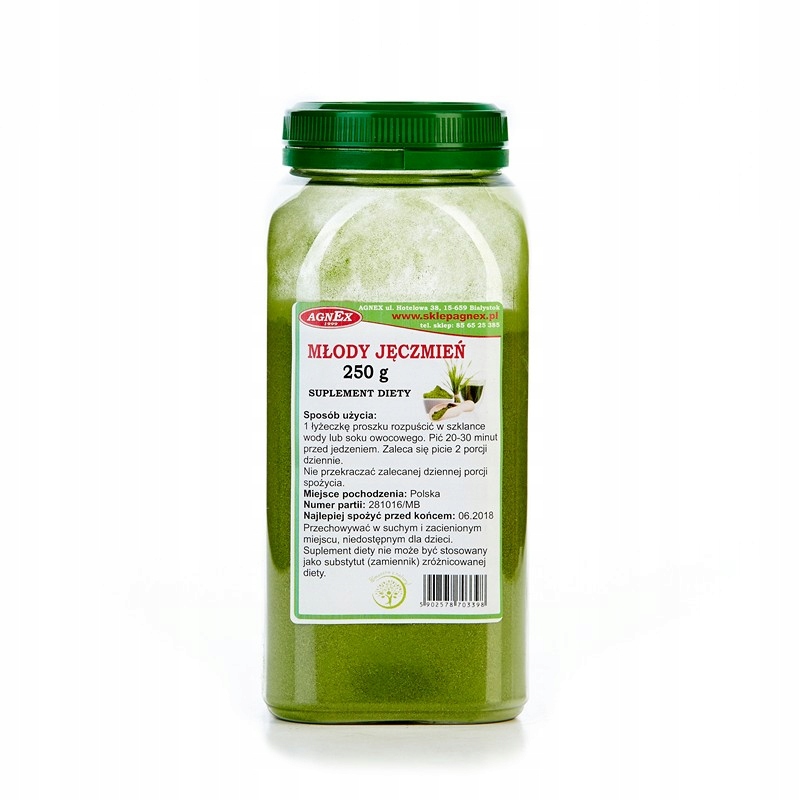 Młody jęczmień to proszek z około siedmiodniowych łodyżek jęczmienia. Pozyskuje się go z młodych listków, które są suszone, a następnie mielone, w taki sposób żeby zachować wszystkie walory zdrowotne.