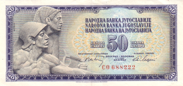 Przepiekny banknot 50 Dinara z Jugosławia - 1968r. (P-83a) w absolutnie doskonalym stanie bankowym I (UNC).